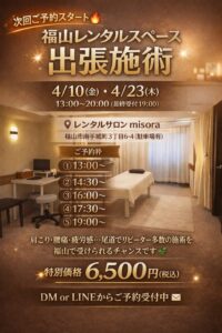 【4/10・4/23】福山出張施術|ご好評につき第3回開催決定!
